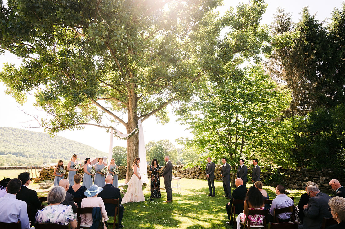 What's the weather like in The Catskills? Our season goes from Memorial Day to Columbus Day. Upstate weather includes daily breezes and cooler nights. The sunsets are amazing and the stars shine. Temperatures in the area range from 65-85 during the summer and 60-75 in early fall. Auxillary heat and cooling can be added as needed. If rain is in the forecast, our first decision is to delay the ceremony. In case of the rare wash-out, we have three beautiful ceremony locations indoors (sometimes even used on nice days). Rainy days don’t have to ruin a celebration with all of the indoor spaces we have available.